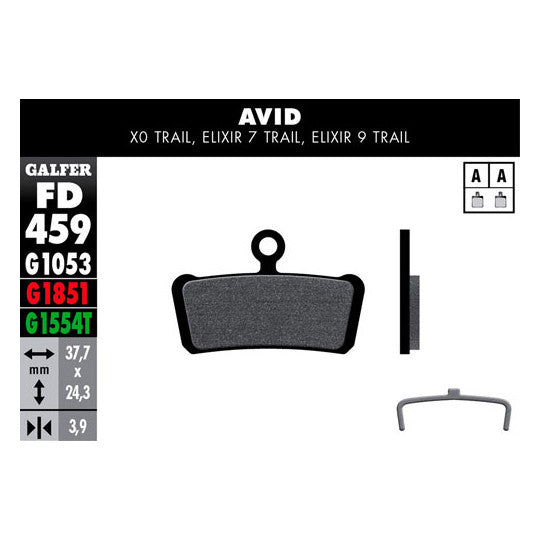 Las pastillas Galfer FD459 G1053 (código 8400160086760) están diseñadas para ofrecer equilibrio entre potencia, control y bajo ruido en frenos SRAM G2 y SRAM Guide R/RS/RSC/Ultimate. Su compuesto G1053 Standard (semimetálico/orgánico) proporciona una frenada eficaz en todas las condiciones, con buena gestión térmica y desgaste contenido del rotor. Backplate de acero y formato sin aletas (Pad shape 58).